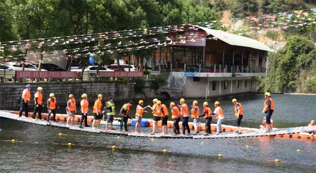 漂流全长5公里,总落差近80米,沿途激流跌宕,九曲十八弯,弯弯有美景,更有激流勇进与虎跳峡闯关,处处皆有惊叫与惊喜。加上网红摇桥项目体验,全程充满欢声笑语,让人流连忘返。