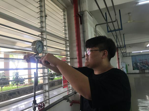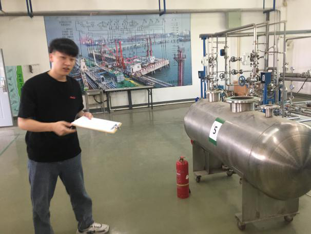 “油品储运调和操作工”是能源学院与中石油共同合作开展的专业技能证书培训,该证书具有较高的含金量。本次的理论知识和技能操作培训均按照石油石化职业技能培训教程的规范标准实施。对于理论培训,老师在教授完相关知识点和习题后,通过学习通进行线上测试并反复练习,帮助学生掌握相关内容。实操培训主要包括倒罐作业、维护保养闸阀、使用灭火器灭火、汽车罐车装车前检查、更换压力表5个项目,指导教师对实验过程进行演示后,学生分组练习,并每人按照操作规程进行操作。